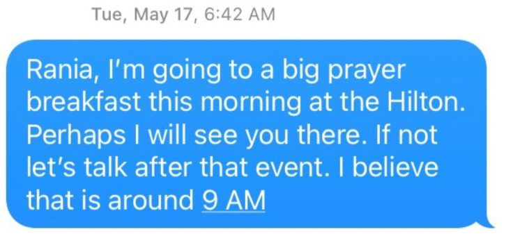 A few hours later, Ms. Mankarious texted Ogg again—“Thank you for the call. I just emailed you the information.”